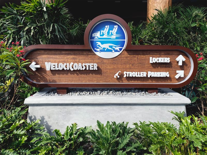 SPI engineered, designed, fabricated, and installed all the themed graphics throughout the attraction’s exterior and interior spaces. These graphics were carefully developed from original movie references and modified to support the VelociCoaster’s unique story, ensuring every sign and graphic feels as though it’s been lifted straight from the Jurassic World universe.