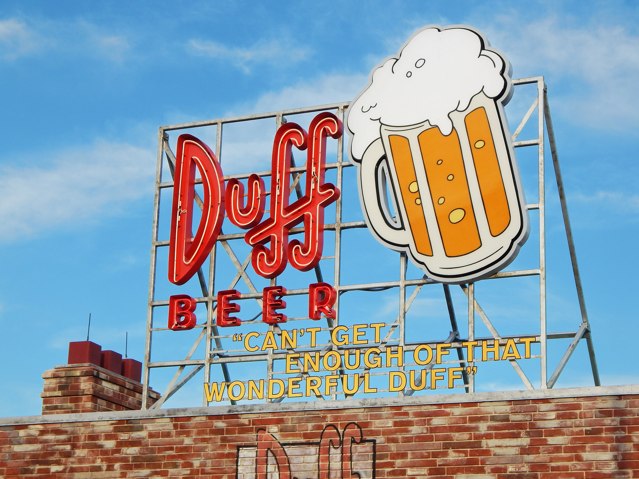 SPI’s scope included fabrication and installation for Kang & Kodos’ Twirl ‘n’ Hurl, where guests hop into flying saucers to join Springfield’s drooling alien duo on a hilarious, dizzying adventure. We also delivered graphics and signage for The Simpsons Ride™, Duff Brewery—complete with its open-air beer garden, giant Duffman statue, and TV screens playing classic clips—and Kwik-E-Mart, packed with Springfield staples from giant pink-iced donuts to Duff energy drinks and themed souvenirs.